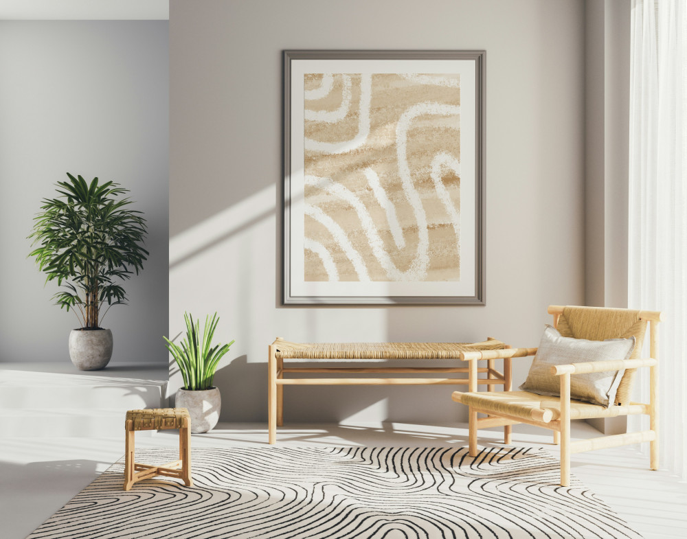 Med sit minimalistiske formsprog og klare farver egner den sig til både stue, kontor og andre rum, hvor man ønsker et kunstnerisk element med nordisk præg.